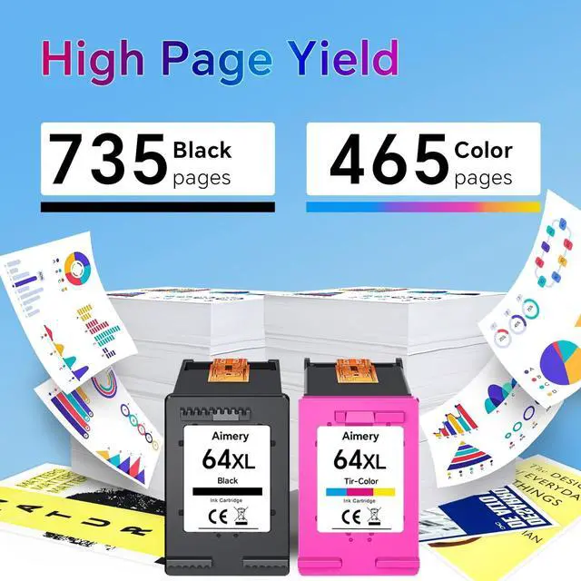 Page Printing Capacity: 64xl ink cartridge combo pack (The 64 XL ink cartridge black can print up to 735 pages, and the 64 XL ink cartridge color can print up to 465 pages) A total of 1200 pages Meeting your daily office and home printing needs. ^^ Smart Ink for