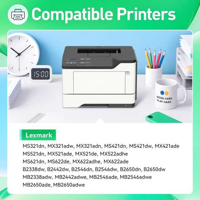 ^^ Compatible Printers: Compatible with Lexmark MS321dn MX321adw MX321adn MS421dn MS421dw MX421ade MS521dn MX521ade MX521de MX522adhe MS621dn MS622de MX622adhe MX622ade B2338dw B2442dw B2546dn B2546dw B2650dn B2650dw MB2338adw MB2442adwe MB2546ade MB2546adwe MB2650ade MB2650adwe Series Printer.