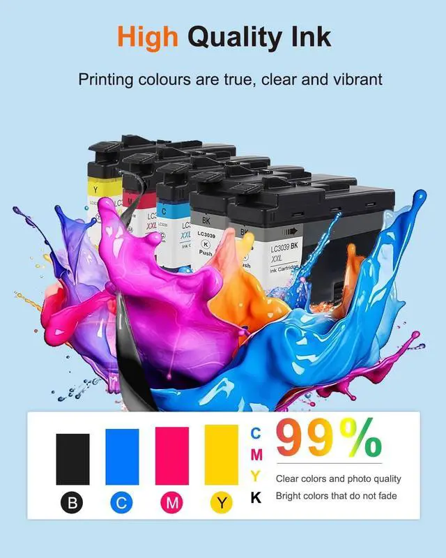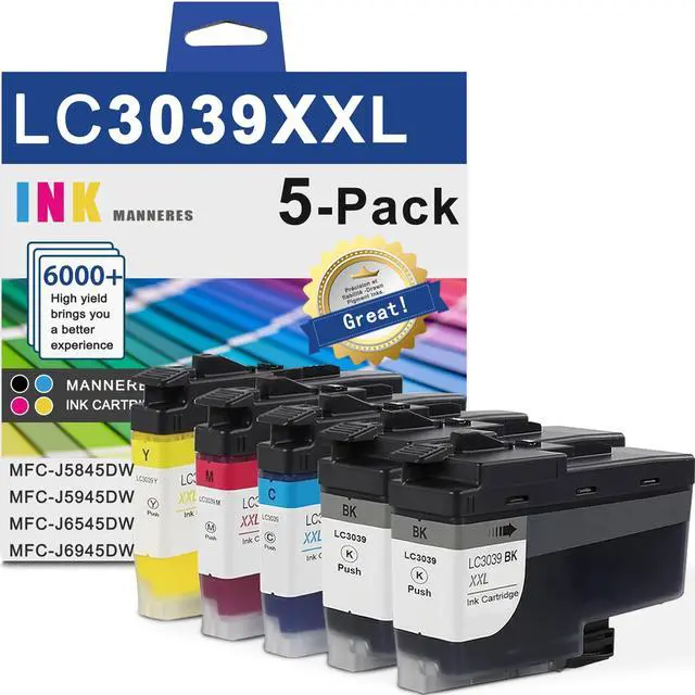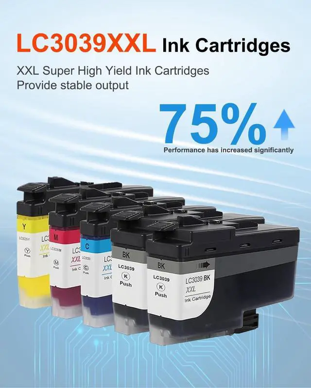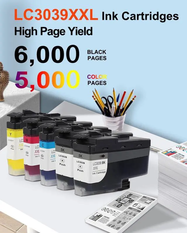 Low Cost: Each LC3039XXL Black ink cartridges can output at least 6, 000 pages, each LC3039XXL Color ink cartridges can output at least 5, 000 pages. Allowing you to achieve print quality comparable to the original at a low cost. These 5 packages offer a total of 27, 000 pages, making them ideal for use in homes, offices and schools. (Letter/A4, 5% coverage) ^^ Anti-Clogging Technology -