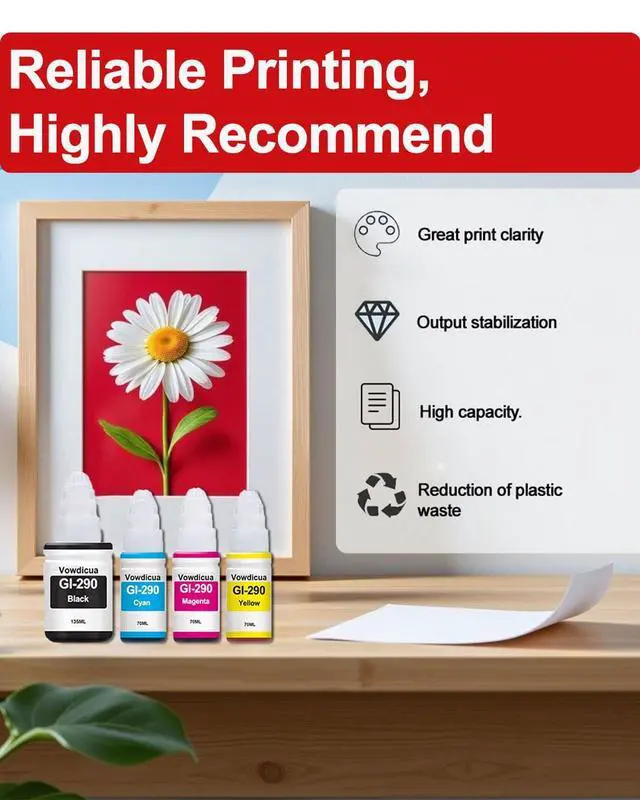 Outstanding performance and high quality: GI290 GI-290 Ink Bottles ensures clear prints and delivers the desired color effect on paper, meeting all your office and home printing needs. Enjoy its reliable performance whenever you need it ^^ Each GI290 GI-290 Ink Bottles printers undergoes a strict quality testing procedure to ensure quality and compatibility with your printer