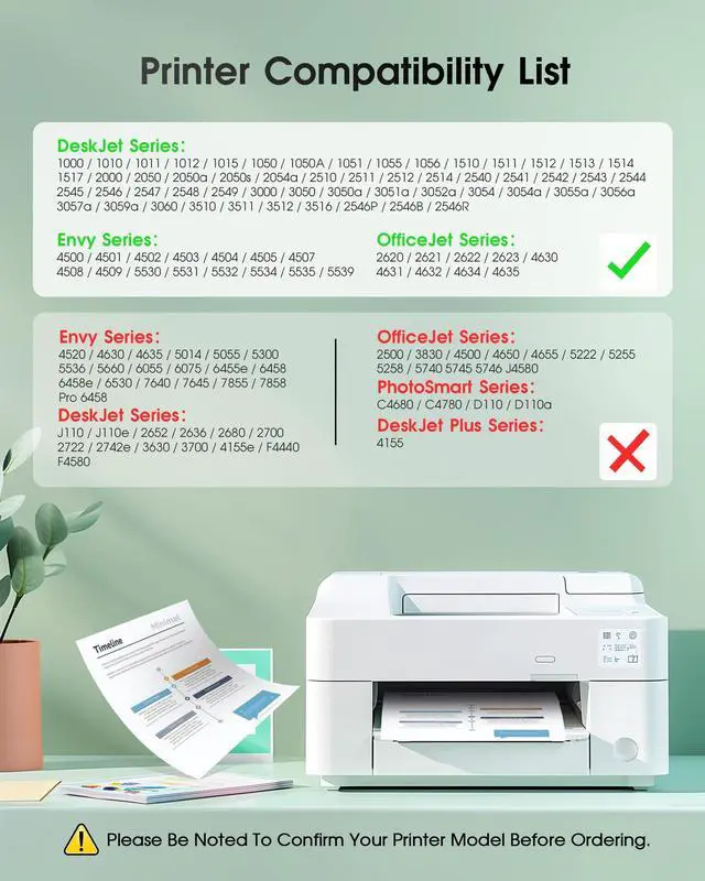 ^^ Printer Compatibility: HP Envy 4500 4501 4502 4503 4504 4505 Series, Envy 5530 5531 5532 5534 5535 5539 Series, OfficeJet 2620 2621 4630 4632 4634 4635 Series, DeskJet 1000 1010 1012 1050 1051 1055 Series, DeskJet 1056 1510 1512 2000 2050 2510 Series, DeskJet 2512 2514 2540 2541 2542 2543 Series, DeskJet 2544 2646 2547 2548 2549 3000 Series, DeskJet 3050 3054 3510 3511 3512 Series, DeskJet 3050a 3051a 3054a 3052a 3056a, DeskJet 2546P 2546B 2546R Series ^^ High Compatibility &