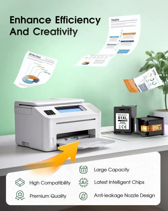 Quality Assurance: Equipped with an intelligent chip to ensure full compatibility with HP 61XL ink cartridges. Each 61XL ink cartridge combo pack undergoes strict industry-standard quality control processes to deliver superior performance ^^