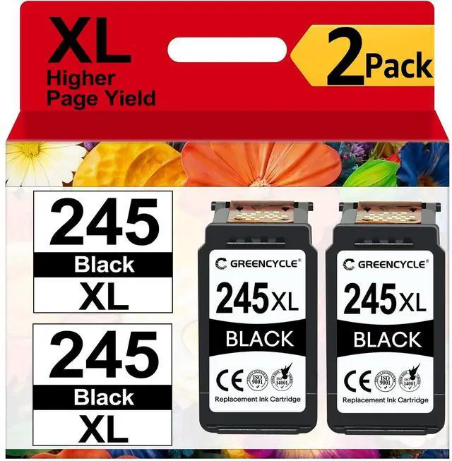 Black Ink: Includes 2 high yield 245 xl black ink cartridges. ISO9001-certified remanufacturing by GREENCYCLE, undergoes 12+ lab tests for optimal ink flow, alignment, and durability.