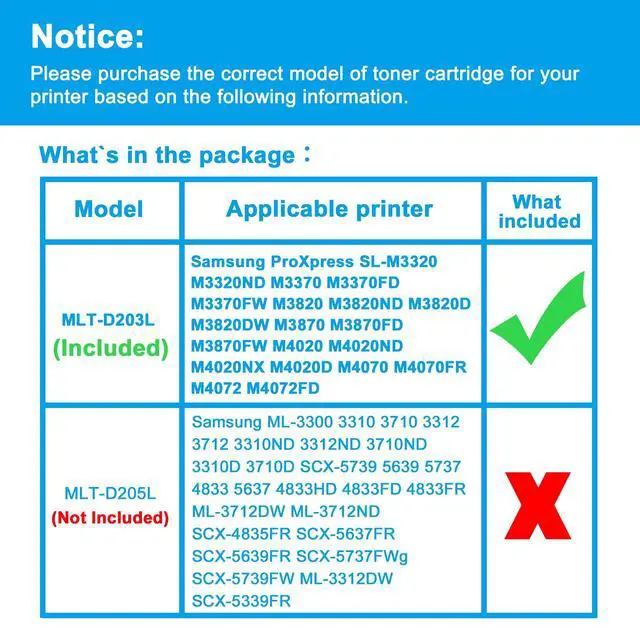 Compatible Printers: Replacement for Samsung ProXpress SL-M3320 M3320ND M3370 M3370FD M3370FW M3820 M3820ND M3820D M3820DW M3870 M3870FD M3870FW M4020 M4020ND M4020NX M4020D M4070 M4070FR M4072 M4072FD M4173FN M4173FDN ^^