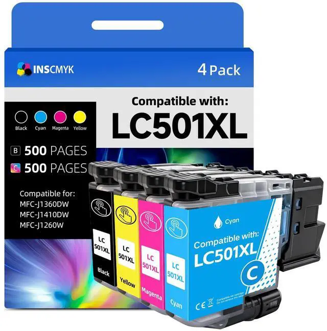 Package Included: lc501xl ink cartridges combo pack include 1 x lc501xl ink Pigment Black, 1 x lc501xl ink Cyan, 1 x lc501xl ink Magenta, 1 x lc501xl ink Yellow, Total 4 cartridges (Please note that the packaging of the product you receive may differ from that shown on the detail page due to product batches. )