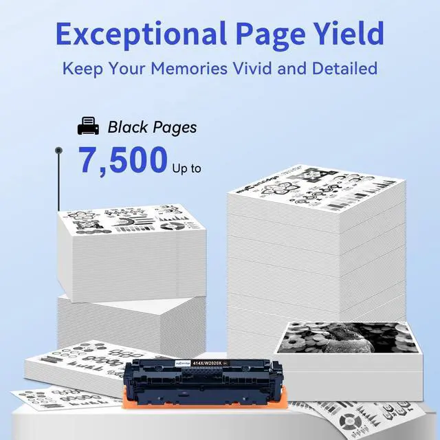 High Page Yield: Up to 7, 500 pages for the 414X black toner cartridge (Letter/A4, at 5% coverage) ^^