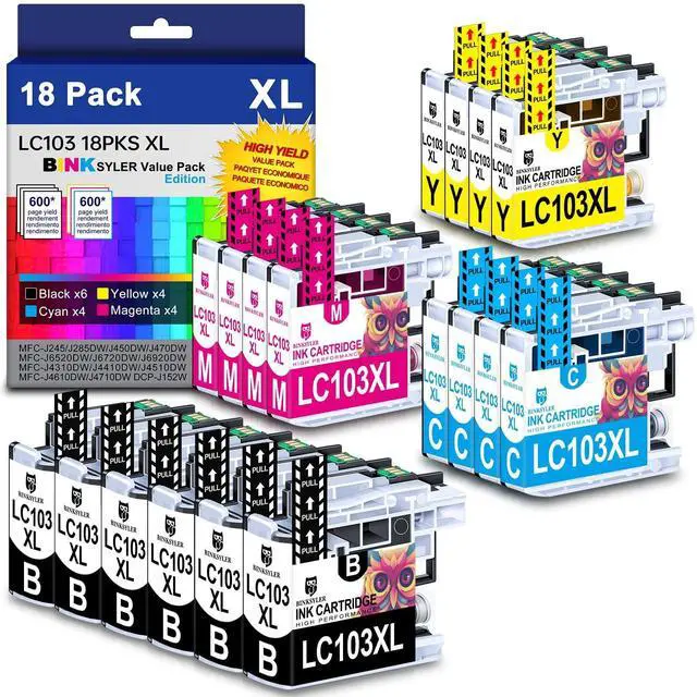 Included: 18 Pack LC103XL ink cartridges Replacement for Brother LC103 LC101 LC101XL LC103XL Printer Ink, including 6 * Black, 4 * Cyan, 4 * Magenta, 4 * Yellow, 1 * User Guide. ^^ 100%