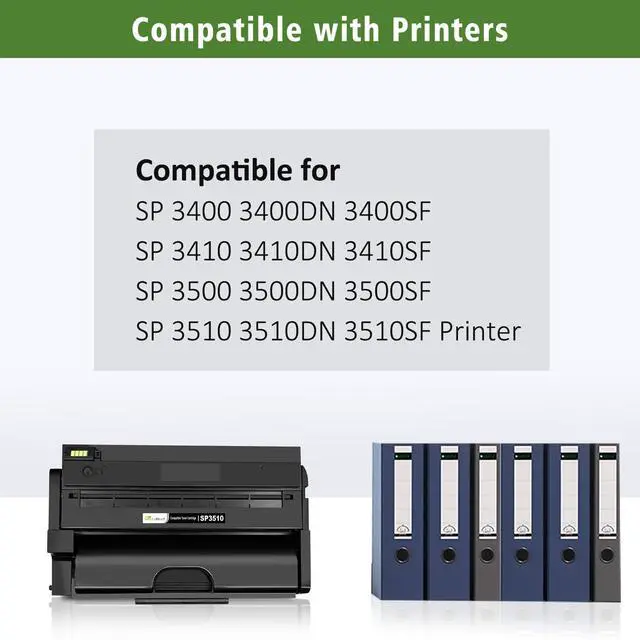 • Compatible with printersRicoh Aficio SP 3400 3400DN 3400SF 3410 3410DN 3410SF 3500 3500DN 3500SF 3510 3510DN 3510SF Printers.