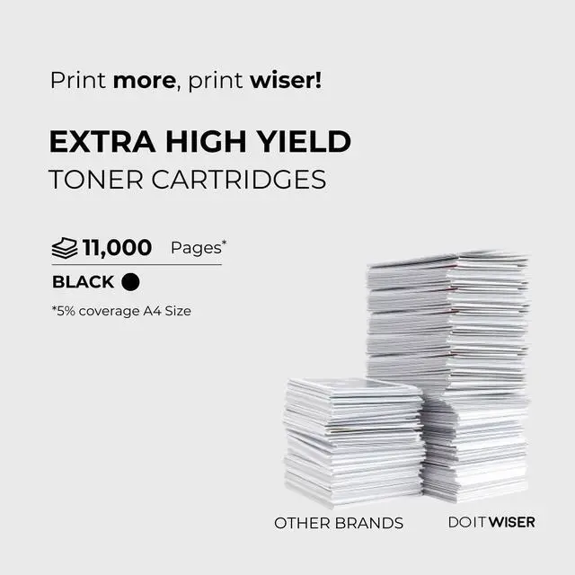 ^^ High Page Yield: With an output of up to 11, 000 pages at 5% coverage, this high-yield black toner is designed for heavy printing tasks, minimizing the need for frequent replacements.