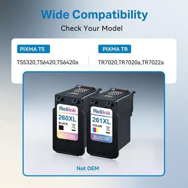 ^^ Broad Canon Compatibility: ReliInk 260 261 ink cartridges black and color replacement for canon ts6420a ink cartridges will work flawlessly with your canon pixma TS6420a TS6420 TS6400 TR7020a TS5320 TR7000 TS5300 TR7020 printer ink cartridges. Enjoy smooth, worry-free printing every time.