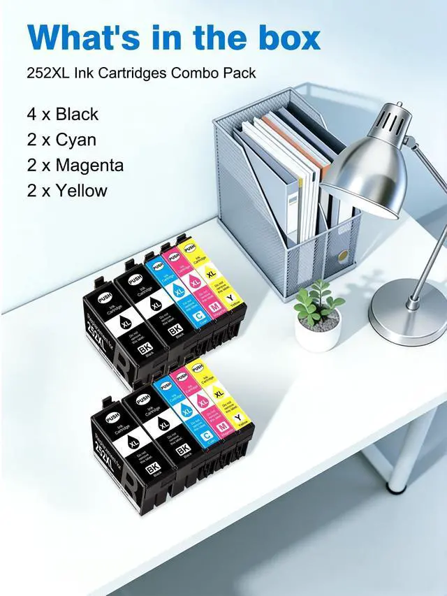 Package contents: 4x 252xl black ink cartridges, 2x 252xl cyan ink cartridges, 2x 252xl magenta ink cartridges, 2x 252xl yellow ink cartridges ^^
