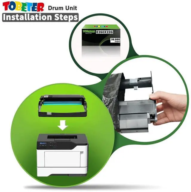 Product Name: ToBeter Remanufactured E260X22G E260 Drum Unit Replacement For Lexmark E260X22G E260X42G Photoconductor Kit (PC Kit, Not Toner, 30K Pages) ^^ Compatible E260X22G Drum for Lexmark E260 E260d E260dn E260dt E260dtn, E360d E360dn E360dt E360dtn, E460d E460dn E460dw E460dtn, E462dtn E460dtw E462; for Lexmark X264dn X363dn X364d X364dw X463de X464de, X466de X466dte X466dwe Printer Drum / Imaging Unit ^^