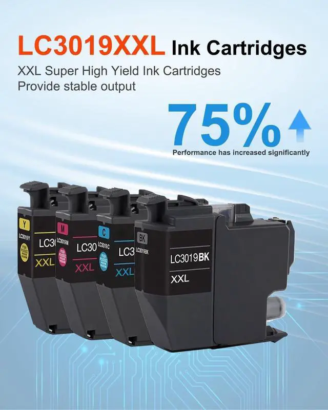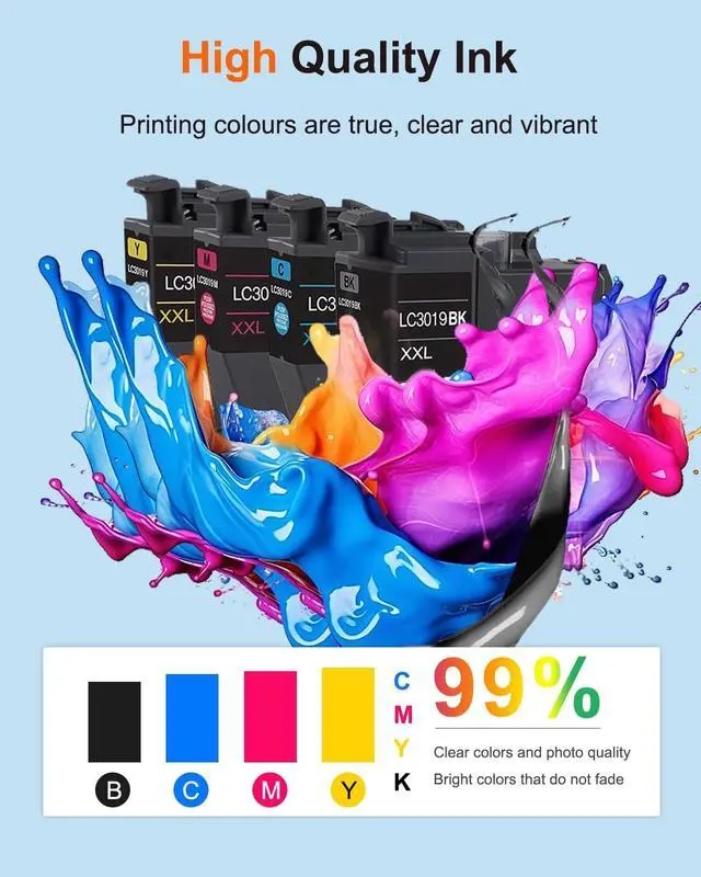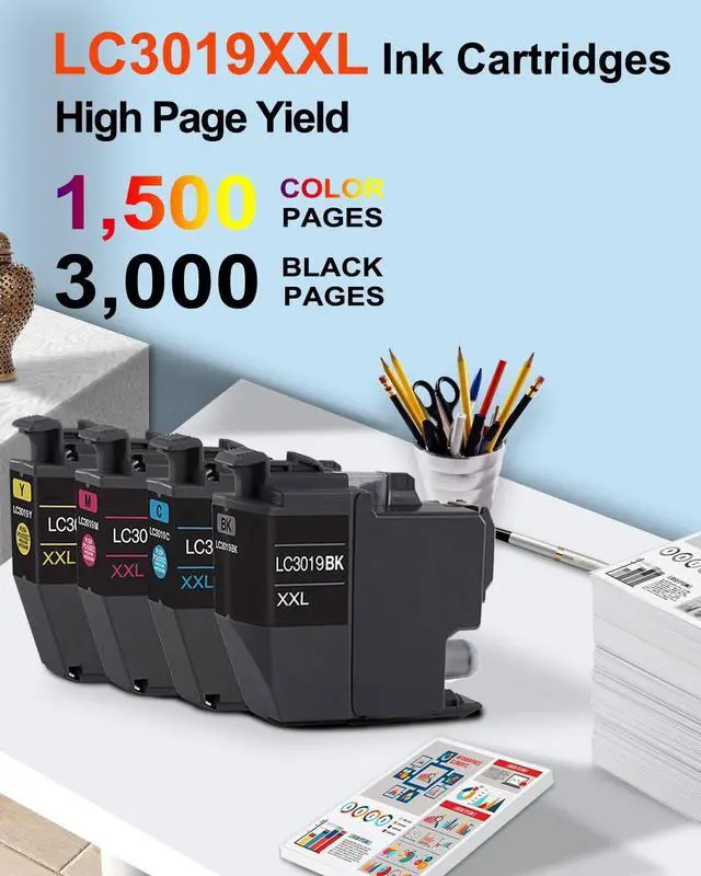 Delivers Superopr Inkjet Print quality: LC3019XXL 4pk Ink Cartridges for provides sharper images and high quality output, long time non fading, fast printing speed and high page yield. The ink flows smoothly and consistently, ensuring hassle-free printing without any smudges or streaks