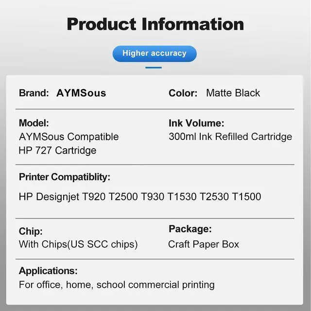 ^^ Ink Volume: 300ML Matte Black Ink Cartridge with SCC chip, has the same high page yield as the original ^^