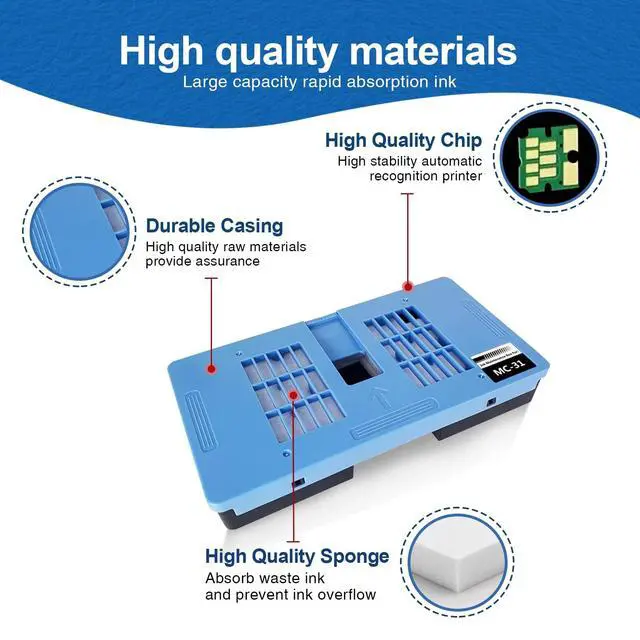 MC-31 maintenance ink cartridge could help you maintain print quality and extend the lifespan of the printer ^^ The MC-31 maintenance cartridge is designed and tested to meet the high quality and performance standards, saving you money on costly repairs or replacements ^^ - Promise ISO-9001 approved. 24-hour professional service center, return or replace within 30 days. If you have any questions, we will provide you with professional solutions
