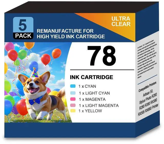 Remanufactured 78 Ink Cartridges C/M/Y/LC/LM Combo 5 Pack High Capacity Replacement for 78 Ink for Artisan 50, Stylus Photo R260 R280 R380 RX580 RX595 RX680