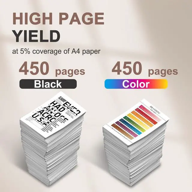 High Yield:Up to 450 pages per 78 Ink Cartridges color ink cartridges(Letter/A4, at 5% coverage)