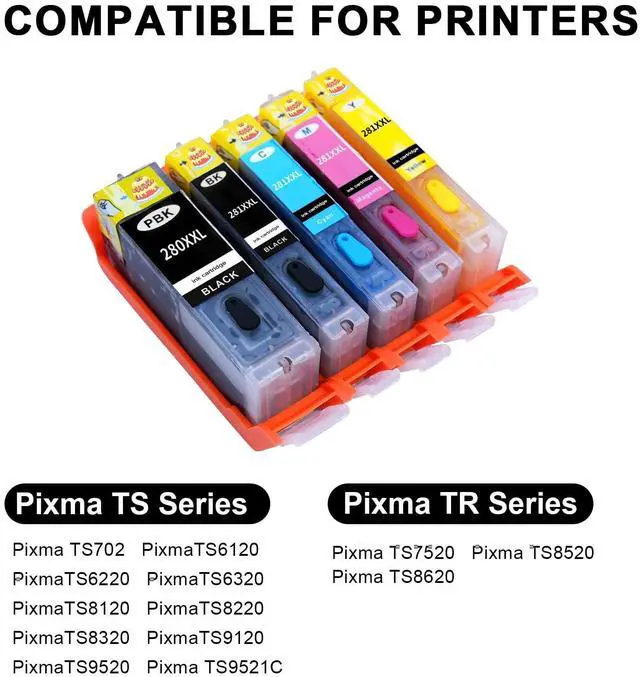 280XL 281XL RefillableInk Cartridges Compatible for TS702 TS702a for PIXMA TR8620 TR8620a TR8520 TS6120 TS6220 TR7520 TS8120 TS8220 TS9120