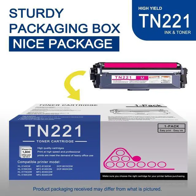 ^^ Page Yield: 1, 800 pages per TN221 Magenta Toner Cartridge at 5% coverage (Letter/A4). ^^ Compatible for