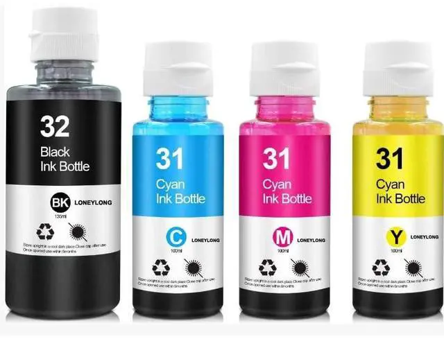 LONEYLONG 4 Bottles 31 Ink Bottle Set 32XL Black Ink Bottle Compatible with HP 31 Ink 32XL Ink with HP Smart Tank 660 670 700 6000 6001 7000 7001 7300 7301 7600 7602 Printer