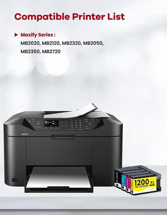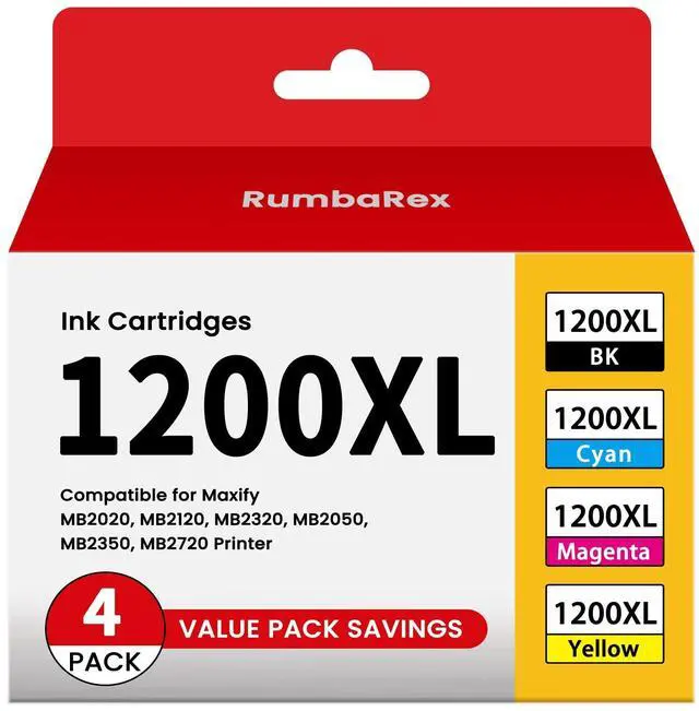 The Package Contains: PGI-1200 PGI-1200XL Ink Cartridges 4-Pack (1x PGI-1200XL Black, 1x PGI-1200XL Cyan, 1x PGI-1200XL Magenta, 1x PGI-1200XL Yellow) ^^ Compatible with Canon Maxify MB2020, MB2120, MB2320, MB2050, MB2350, MB2720 Printer ^^