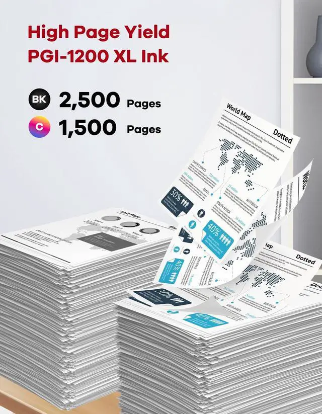 Quality Assurance: Rest easy knowing our PGI-1200XL ink cartridges are ISO-9001 and ISO-14001 certified for stable, Premium-quality printouts every time. Whether it's documents, presentations, or photos, you can trust our cartridges to deliver consistent results ^^