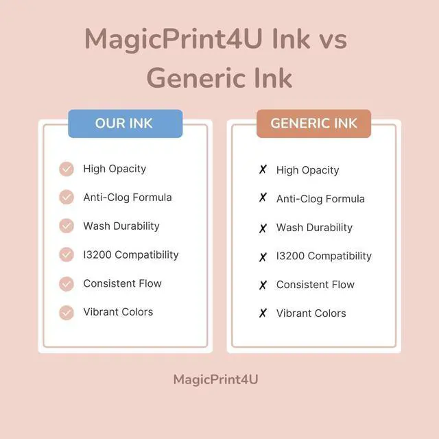 • DESIGNED FOR DEMANDING WORKFLOWS Trusted by small businesses, creators, and custom print shops, MagicPrint4U ink supports production environments that demand reliability, repeatability, and vibrant output.