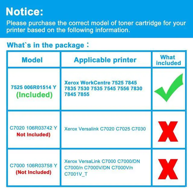 ^^ Compatible Printers: Replacement for Xerox WorkCentre 7525 7845 7835 7530 7535 7545 7556 7830 7845 7855 ^^