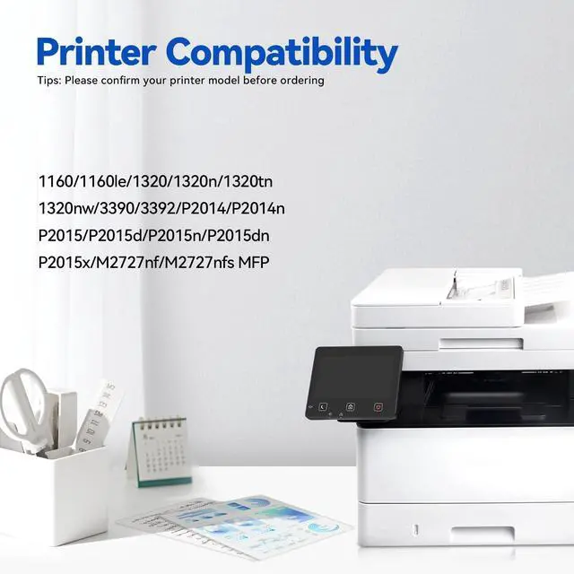 • Compatible for Printers: 1320 1320n 3390 1160 1320tn 1320nw 3392 1160le P2014 P2014n P2015 P2015d P2015n P2015dn P2015x M2727nf M2727nfs printer