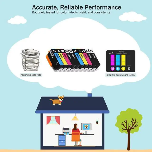- Cartridges come filled with a new generation chip, and work with all new printers.