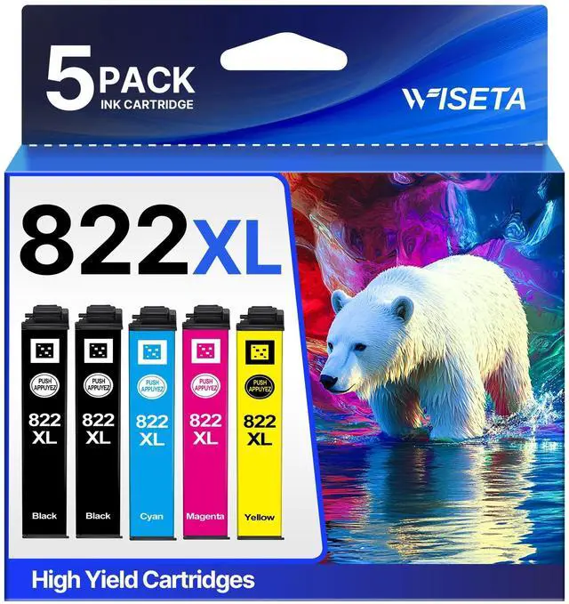 Package includes: We offer high-yield 822xl ink cartridge set that works seamlessly with epson 822 ink cartridges, featuring a practical combination of 2 black, 1 cyan, 1 magenta and 1 yellow cartridges ^^