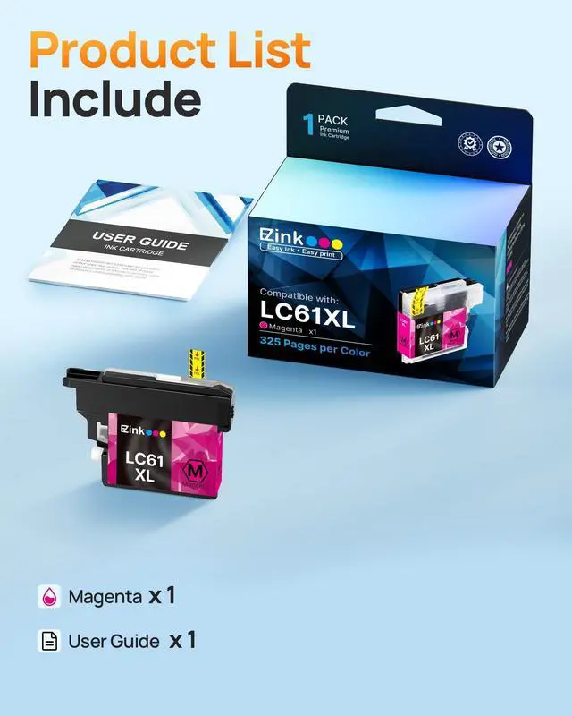 Product name: E-Z Ink ink cartridges replacement compatible for LC61 LC-61 ^^ Premium quality ink delivers crisp text and graphics