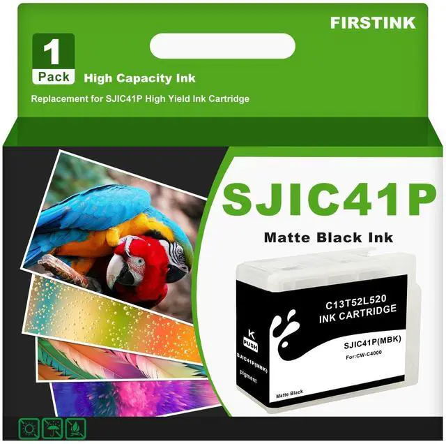 FIRSTINK SJIC41P Matte Black Ink Cartridge C13T52L520 SJIC41P-MK Ink Remanufacture Compatible for ColorWorks CW-C4000 Color Inkjet Matte Label Printer (Matte)