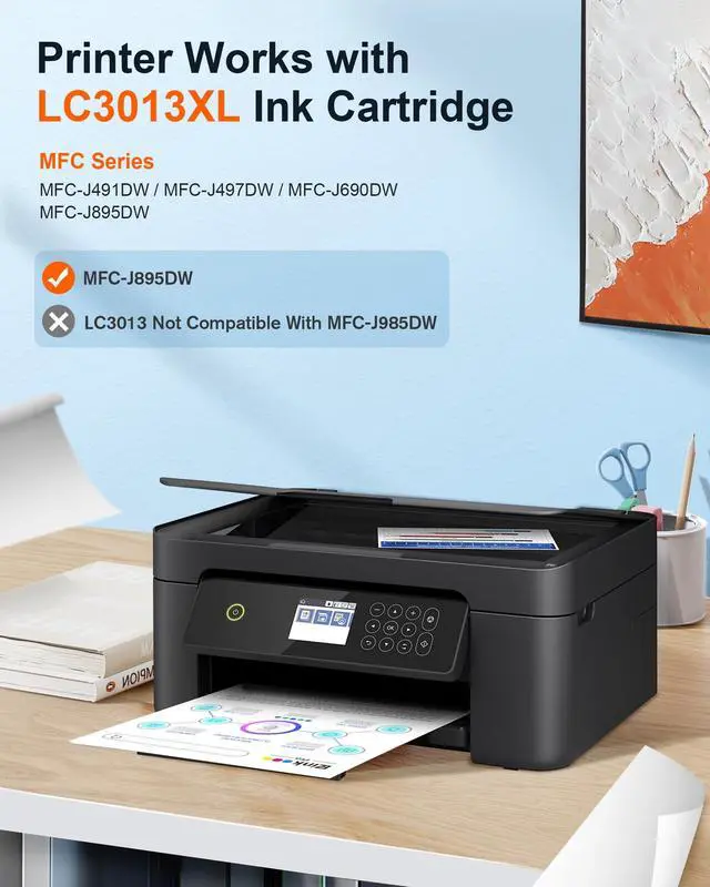 Compatible printer: LC3013 LC3013XL ink cartridge comaptible replacemnt with Brother MFC-J491DW MFC-J497DW MFC-J690DW MFC-J895DW printer.