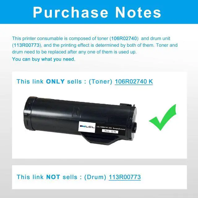 Reliable Quality: LCL 106R02740 cartridge uses high quality toner, toner particle size distribution, good mobility, high transfer rate, resulting in a clear image and high gloss print effect; Printing efficiency is high, waste powder rate is low, so as to ensure sufficient page yield.