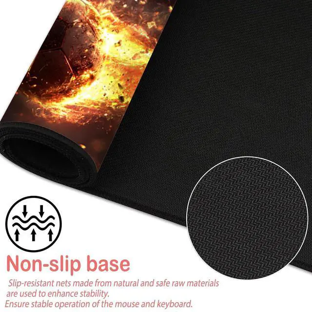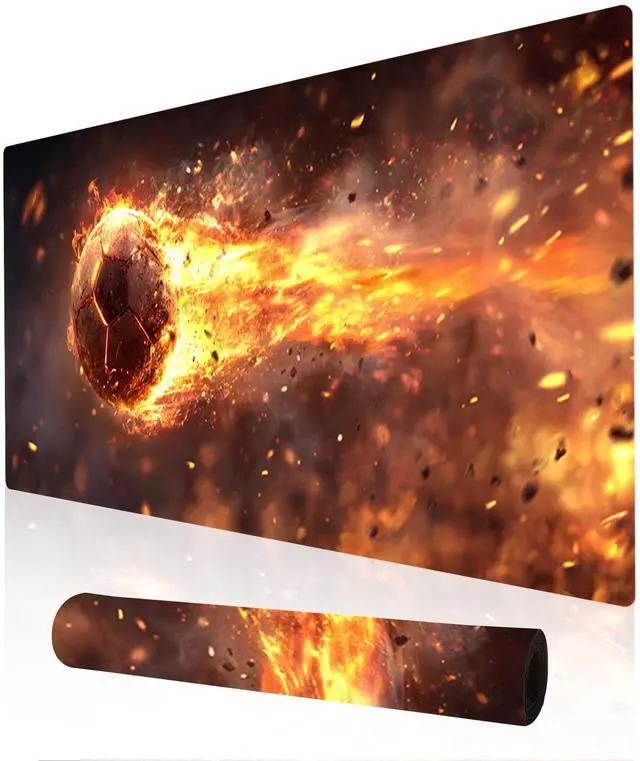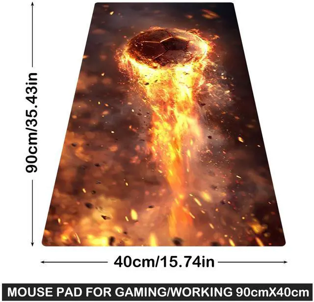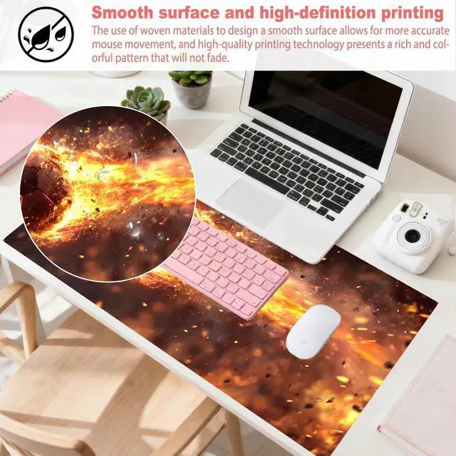 Features a fiery orb artwork, bringing a dynamic and intense vibe to your workspace while providing a large, smooth surface area for better mouse movement. ^^ Large size design ( 35.4 x 15.7 x 0.1IN ) offers ample space that fits both keyboard and mouse, ideal for gamers or sci - fi/fantasy theme enthusiasts who love explosive energy. ^^ Long - lasting anti - fray rugged stitching surrounds the mouse pad, enhancing durability to preserve the vivid fiery orb design. ^^ Ultra - smooth surface, as sleek as the molten energy of the fiery orb, ensures exceptional tracking performance and aiming precision with optical and laser technology.
