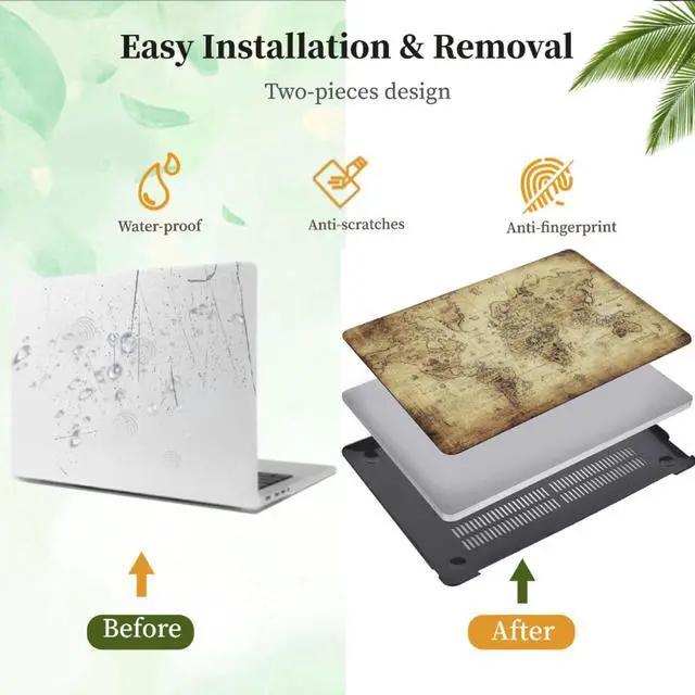 PlasticStyle: Art DecoPackage Includes1 x Laptop Hard Shell CaseProduct Features1. Skin-friendly feel, not easy to stain fingerprints, rounded corners smooth processing, warm touch does not hurt the hand2. High-performance plastic material, not easy to bend and deform, anti-drop and shockproof, protect your Macbook. 3. Clip design, four rubber anti-slip pads at the bottom, stable and not easy to fall. 4. Lightweight and thin, will not increase the volume, easy to place in the computer bag storage. 5. Ideal Gift for