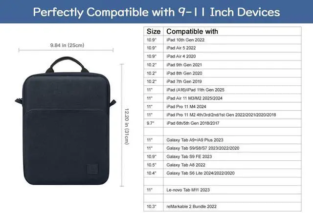 Inch Tablets: Dadanism 9-11 inch tablet carrying case is compatible with iPad 10th Gen 10.9 2022, iPad (A16) 11" 2025, iPad 10.2" 9th 8th 7th Gen 2021 2020 2019, iPad Air 11" M3 M2 2025 2024, iPad Pro 11" M4 M2 2024-2018, iPad Air 5th 4th Gen 10.9 2022 2020; Galaxy Tab A9+ Plus 11" 2023, Galaxy Tab S9 FE 10.9" 2023, Galaxy Tab A8 10.5", Galaxy Tab S9 S8 S7 11", Galaxy Tab S6 Lite 10.4"; reMarkable 2 10.3"; and other 9-11 inch device.