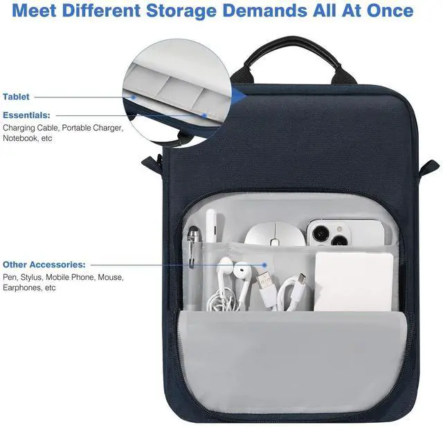 ^^ Convenient Storage: In addition to the tablet, the main compartment can also store charging cables, chargers, power banks, notebooks, etc. The outer zipper pocket can keep the smaller items well-organized, such as pens, mobile phones, mice, earphones. The zipper glides smoothly and allows easy access to your device.