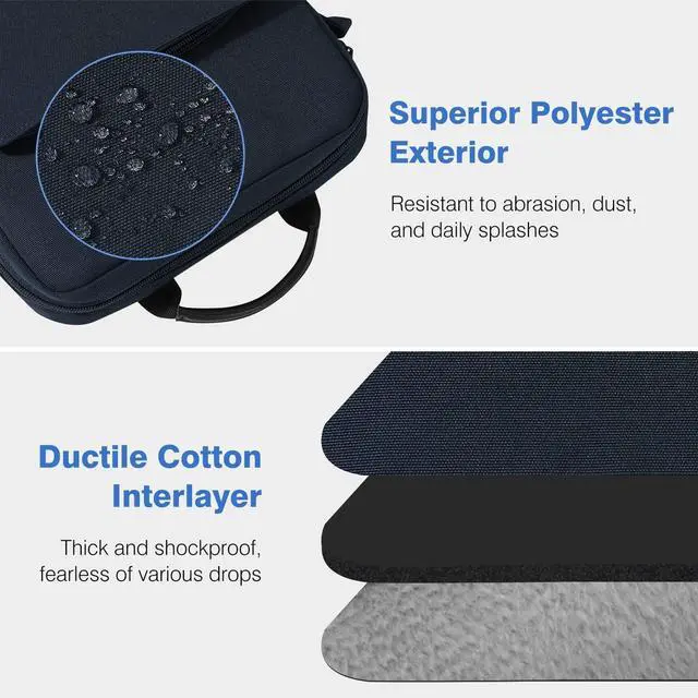 ^^ Superior Protection: The exterior is made of premium polyester material, anti-splash, wear-resistant and dustproof. The shock-absorbing cotton interlayer, thickened corners and soft plush interior can protect your device from scratches, wear, dents, bumps and shocks.