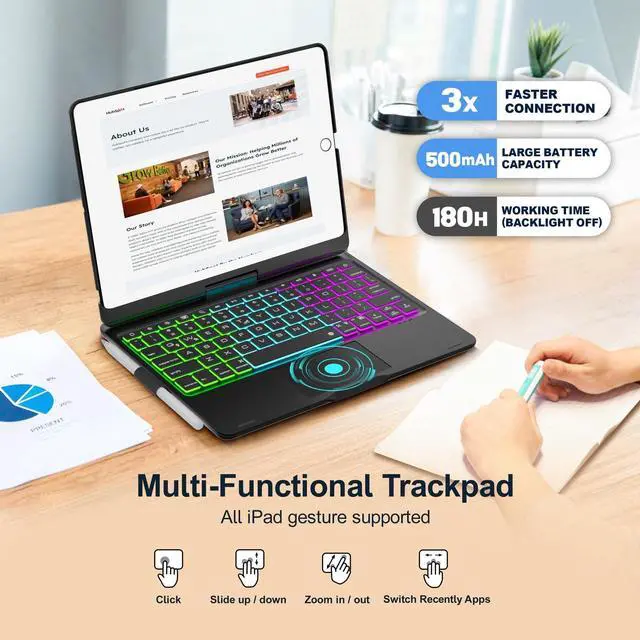 ^^ Multi-Touch Trackpad: iPad 9th generation case with keyboard features a large multi-touch trackpad for convenient navigation and flexible gesture control. Enjoy browsing, designing, or drafting with unparalleled convenience. You don't need to to manually swipe the iPad screen ^^ Large