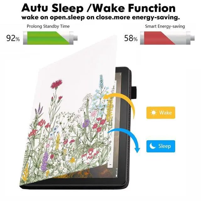 Product Features: Made of High end PU leather, features shockproof, protective smooth outer casing and sturdy exterior with soft microfiber interior keeps your tablet screen safe. HD 10 2019 tablet case with HD print in colorful pattern of various style, Durable to use and no fade, Perfectly decor your tablet, Beauty and function come together. Viewing angle frees your hands from other activities and avoids any joint pain, and enables you to type or watch videos comfortably. Provides auto sleep/wake function with built-in magnetic strips. Smart automatically wakes or puts your device to sleep when the lid is opened and closed. Designed with 4 delicate card slots inside for you to carry your necessary cards. There is a flexible pencil holder at the edge of the shell for keeping your stylus in place (Stylus is not included). Precise cutouts design makes all ports, buttons, cameras and microphones be accessible easily without removing the case.