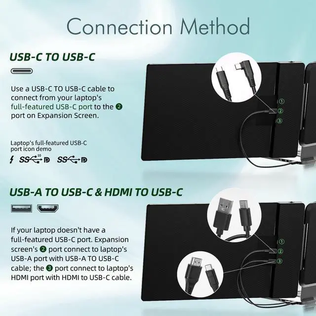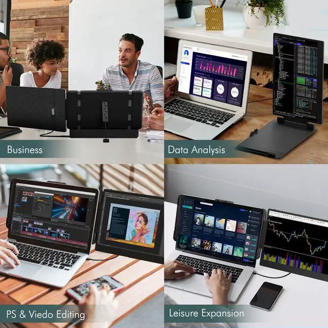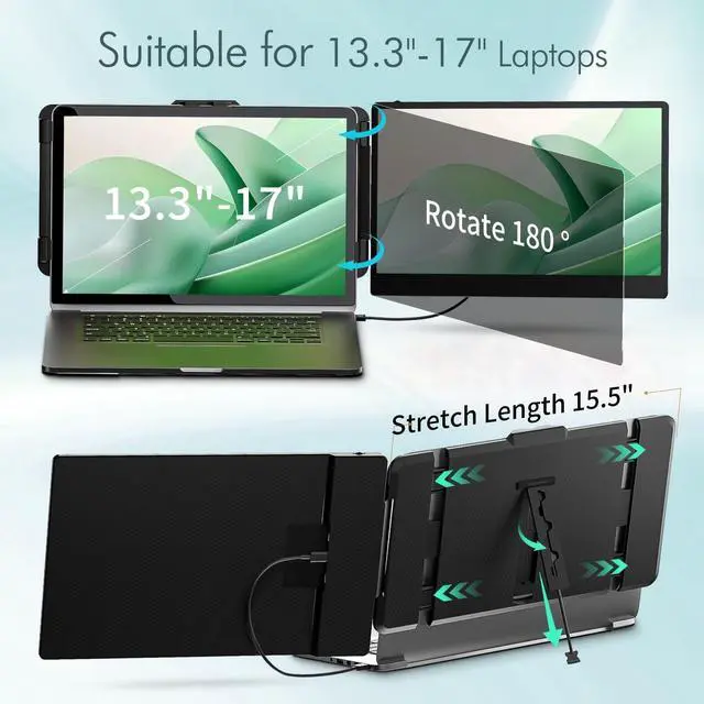 What is a LOPPO portable dual monitor for laptop? The LOPPO laptop extender monitor portable is 14 inch FHD 1080P travel monitor for laptop 2 screens. The laptop second monitor portable is 0-180 degrees foldable easy to carry. The laptop extra monitor portable allows you to customize the screen settings and adjust viewing angle by the kickstand at the back of the bracket. The portable monitor extender for laptop is a good helper for travel and remote work.