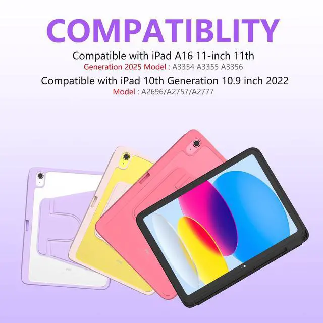 Perfect Match: This set includes an iPad A16 case with keyboard, an illuminated keyboard, a USB charging cable, a transparent keyboard cover, and a user guide. Choosing this combination solves the keyboard and case color matching issue in one go. Also note that this keyboard case is compatible with the iPad 11th generation (models: A3354/A3355/A3356) and iPad 10th generation (models: A2696/A2757/A27777/A3162). For optimal performance, please confirm your iPad model before purchasing. ^^ 360 FREEDOM -