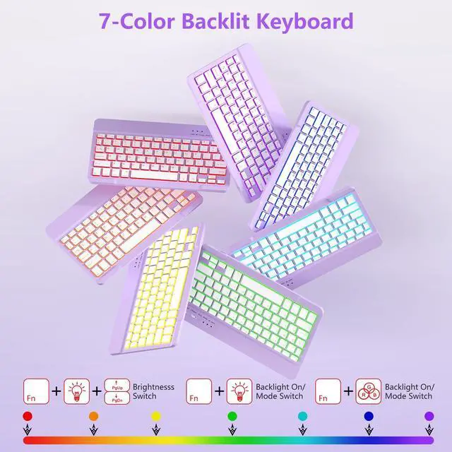 BREATHING MODE: This new iPad keyboard 10th generation features a seven-color backlit keyboard, making it easy to use even in dimly lit environments. We've also designed a breathing light mode that automatically switches the Bluetooth keyboard's backlight colors, creating a unique keyboard experience for you and your family and friends. You can adjust the keyboard brightness using the FN+Light keys to find the most comfortable setting. ^^ 50-HOUR