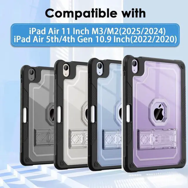 Shockproof Rugged Design- 2 In 1 structure of hybrid material back shell and hard front casing effectively protects your New iPad Air 6th/5th/4th Generation 11 inch 2024/2022/2020 from scratch