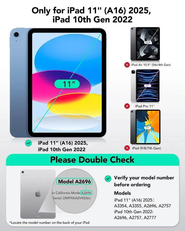 Compatibility: only compatible with iPad 11" (A16) 2025/10th Gen 2022; models A2696, A2757, A2777, A3354, A3355, A3162, A3356 ^^