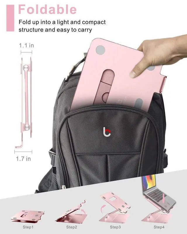 Ventilated Cooling & Foldable: Macbook air stand with aluminum alloy material on top can absorb and discharge heat at ease. What's more laptop riser has heat vent design increase natural airflow help you laptop cooldown, hence running at optimal performance longer, and even prolonging the life of your laptop. This computer stand can easily fold and fit into your bag and laptop case. ^^ Wide Compatibility & Multi -