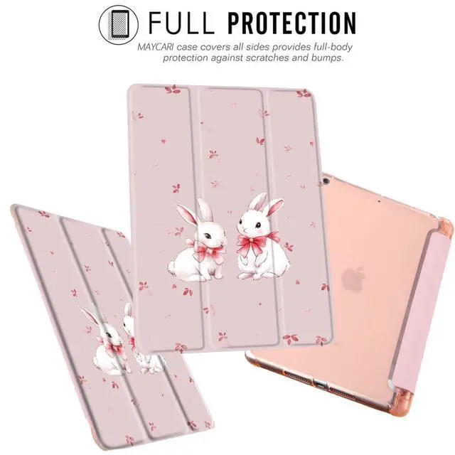 MAYCARI Cartoon Cute Bunny Fashion Case for iPad 10.9 inch 2022 with Pencil Holder, Original Pattern iPad 10th Generation Soft TPU Back Protective Cover Shell, Auto Sleep/Wake Slim Shell - Pink