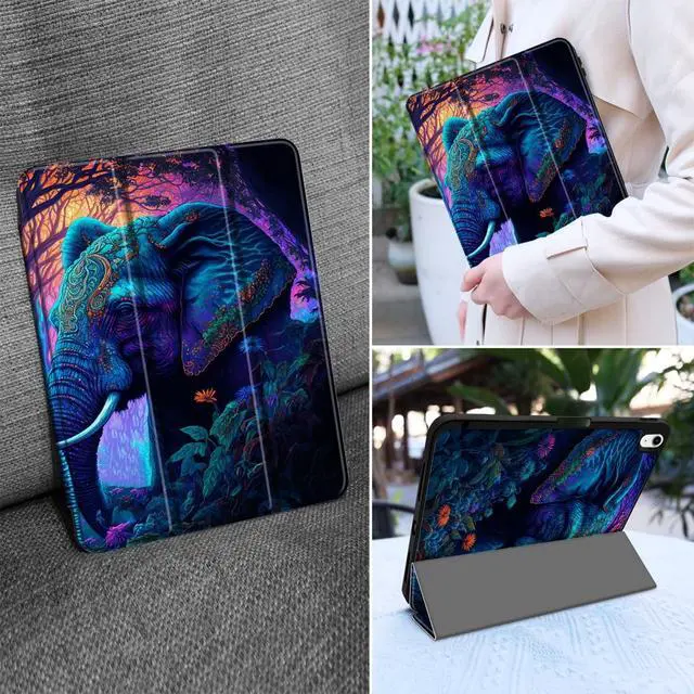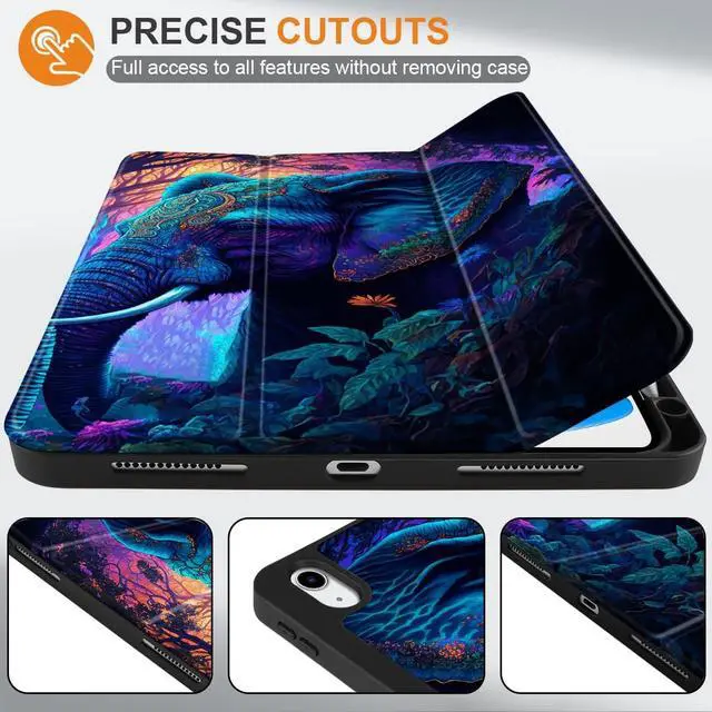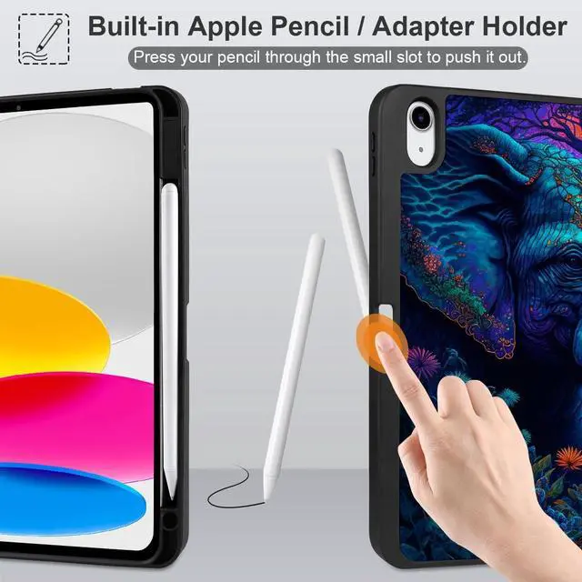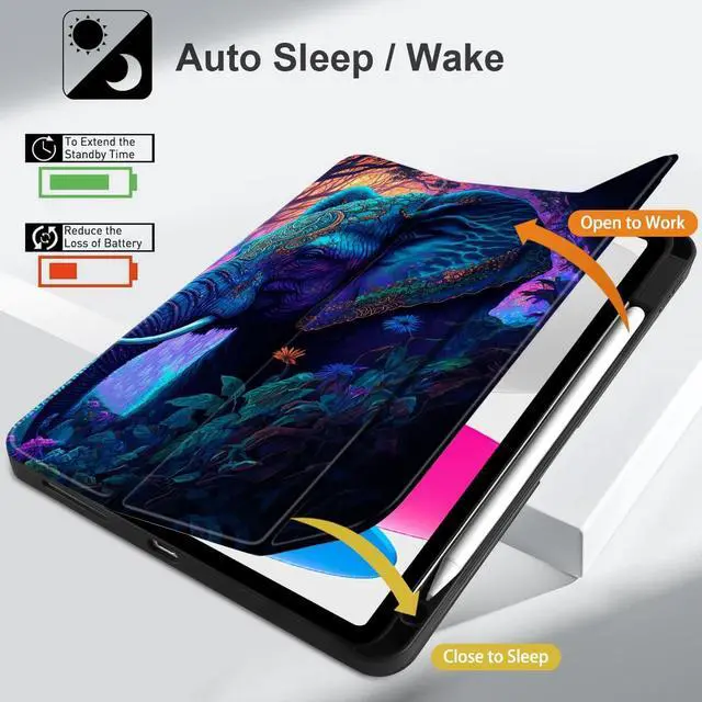 MEEgoodo Case for iPad A16 11th Generation 11 inch 2025/iPad 10th Generation 10.9 inch 2022, Tablet Cover with Trifold Stand + Pencil Holder + Auto Wake/Sleep + Soft TPU Back Cover, Elephants